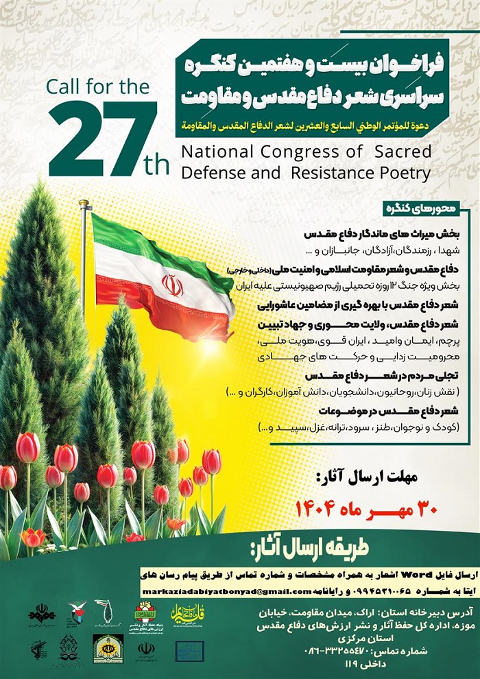 بنا بر اعلام مدیر کل حفظ آثار و نشر ارزش های دفاع مقدس استان مرکزی، بیست و هفتمین کنگره ملی شعر دفاع مقدس و مقاومت و چهاردهمین جایزه ادبی داستان های کوتاه دفاع مقدس و مقاومت (یوسف) با محوریت جنگ 12 روزه برگزار می گردد.